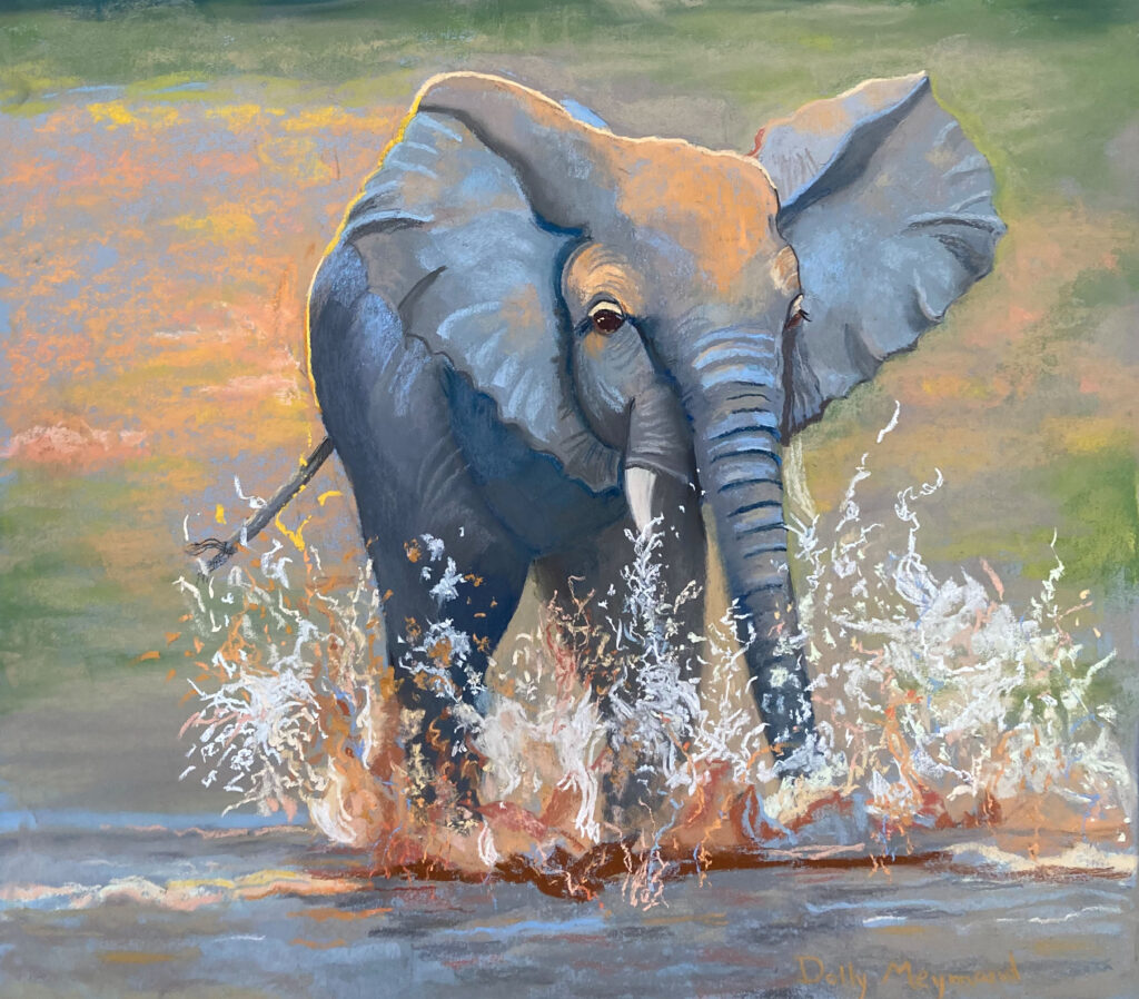 Animals in Water A new pastel series by Dolly. Most pieces are within 17x23 inches. Zebra Bear Buffalo Deer Dog Elephant Horse Kangaroo Lion Orangatang Tiger Wolf